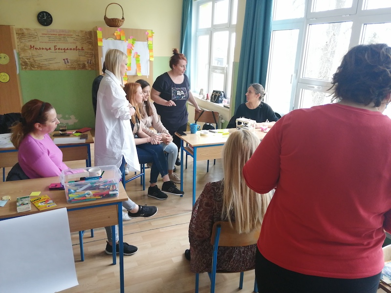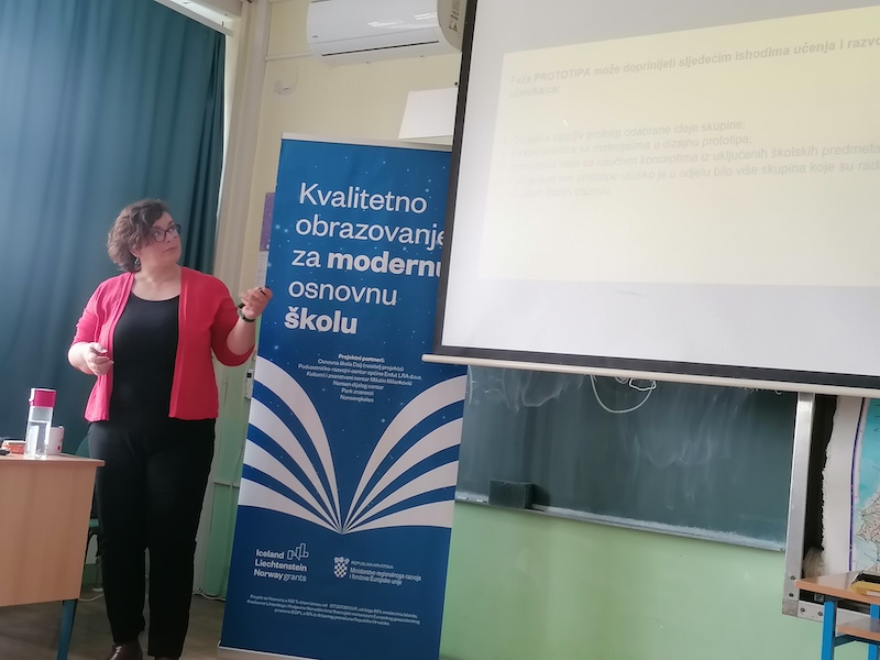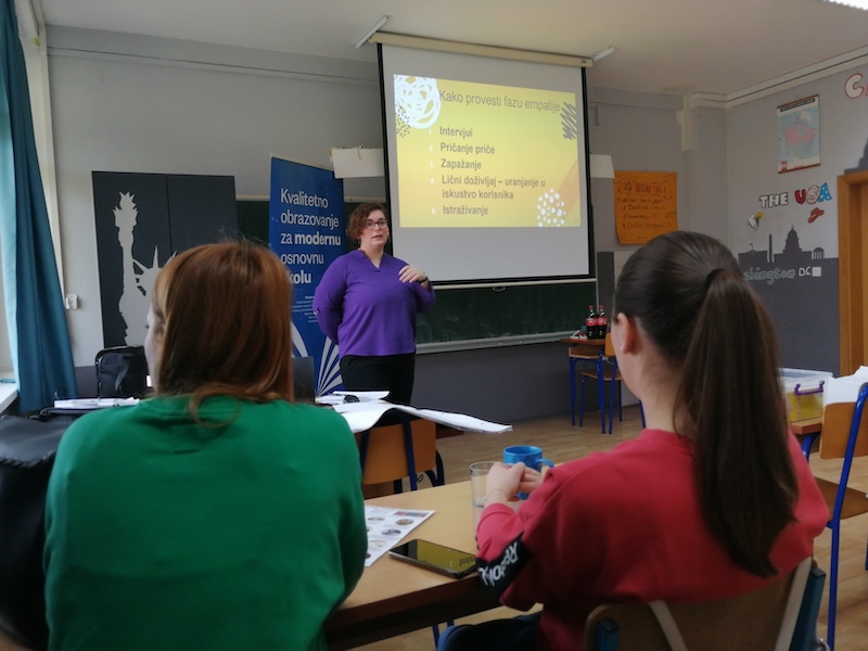 Edukaciju je provela Edina Malkić iz udruge “Interaktivne otvorene škole“ tijekom dva susreta: 10 - 11. ožujka. i 24 - 25. ožujka, a program je trajao ukupno 24 sata. Trening je imao tri glavna cilja: steći iskustvo učenja kroz primjenu dizajn razmišljanja; prenijeti metodičke aspekte primjene dizajn razmišljanja u učionici i promišljati o poziciji i odgovornosti učiteljica i učenika u nastavnom procesu za primjenu ovakvih pristupa u radu sa djecom.