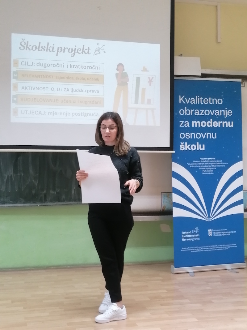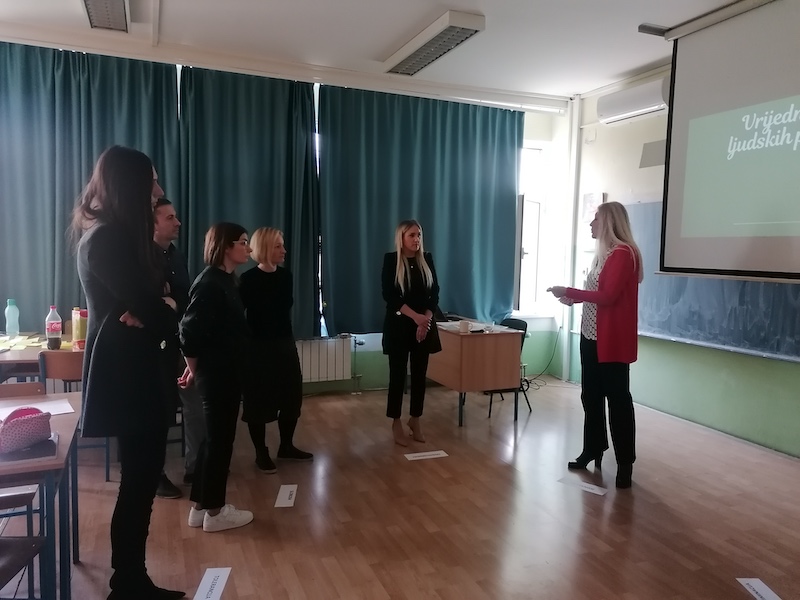Edukacija Obrazovanje za ljudska prava održala se 29. ožujka, a vodio ju je Nikica Torbica iz DKolektiva. Cilj edukacije bio je prenijeti osnovna znanja o ljudskim pravima, osvijestiti o najčešćim oblicima kršenja ljudskih prava te potaknuti nastavnike na promišljanje o vlastitoj ulozi u zalaganju za promociju ljudskih prava u svojoj zajednici.